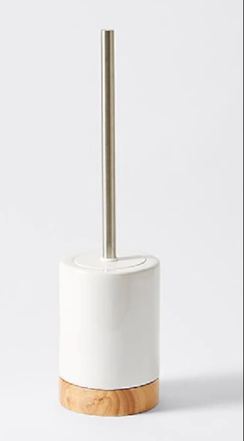 · [For Toilet Brush] Hygienic & Complete: Includes a matching ceramic holder with drainage holes and a discreet wooden lid. The brush handle is wood, with durable, replaceable nylon bristles.