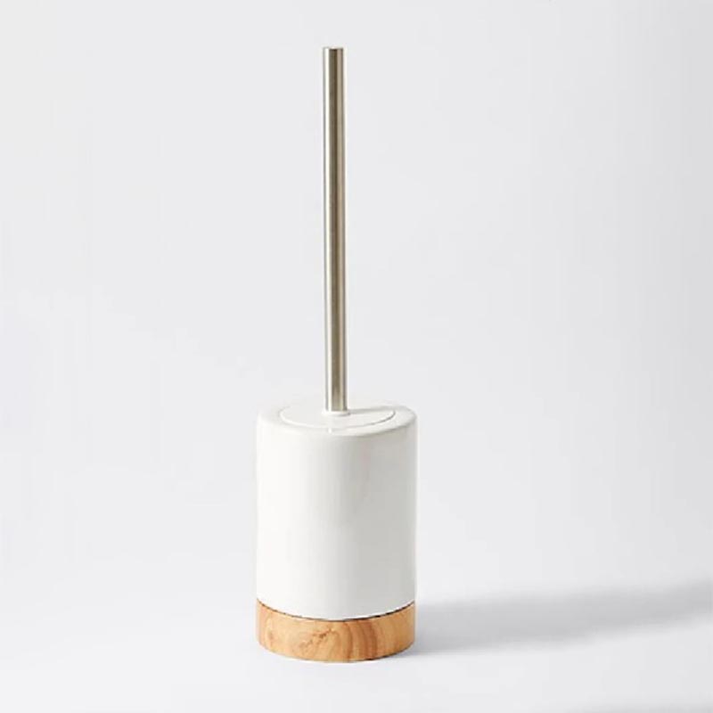 · [For Toilet Brush] Hygienic & Complete: Includes a matching ceramic holder with drainage holes and a discreet wooden lid. The brush handle is wood, with durable, replaceable nylon bristles.