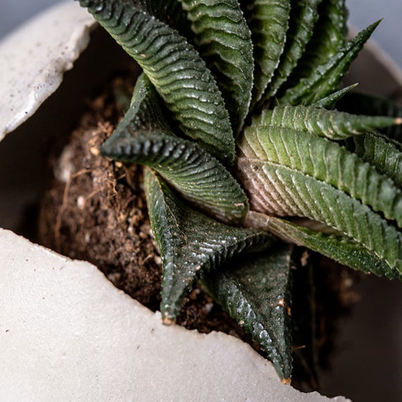 Elevate your home decor with this exquisitely handmade ceramic container, crafted into a cracked eggshell shape. Blending minimalist charm with versatile functionality, it doubles as a cozy tealight holder (casting warm, soft glows) and a tiny planter for succulents or micro-plants.