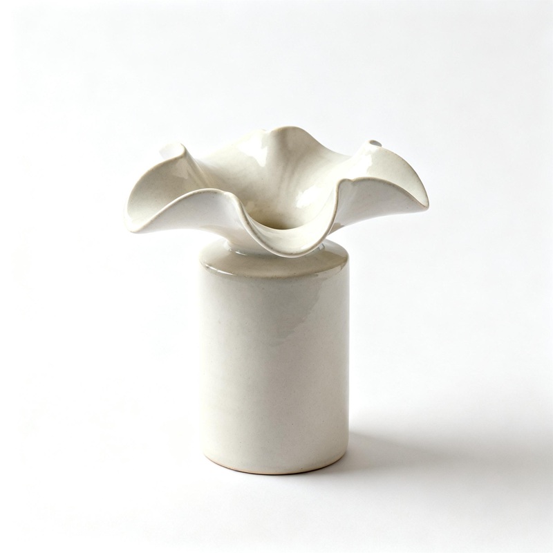 Flower-Mouth Cylindrical Ceramic Vase