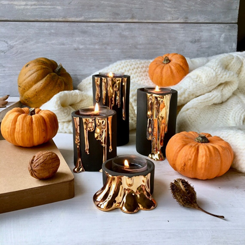 Luxury Gold Drip Ceramic Tealight Holder