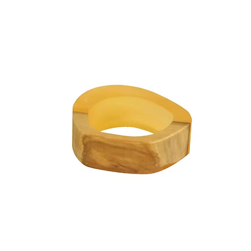 - Each napkin ring features a unique combination of resin and wood, resulting in a one-of-a-kind appearance.