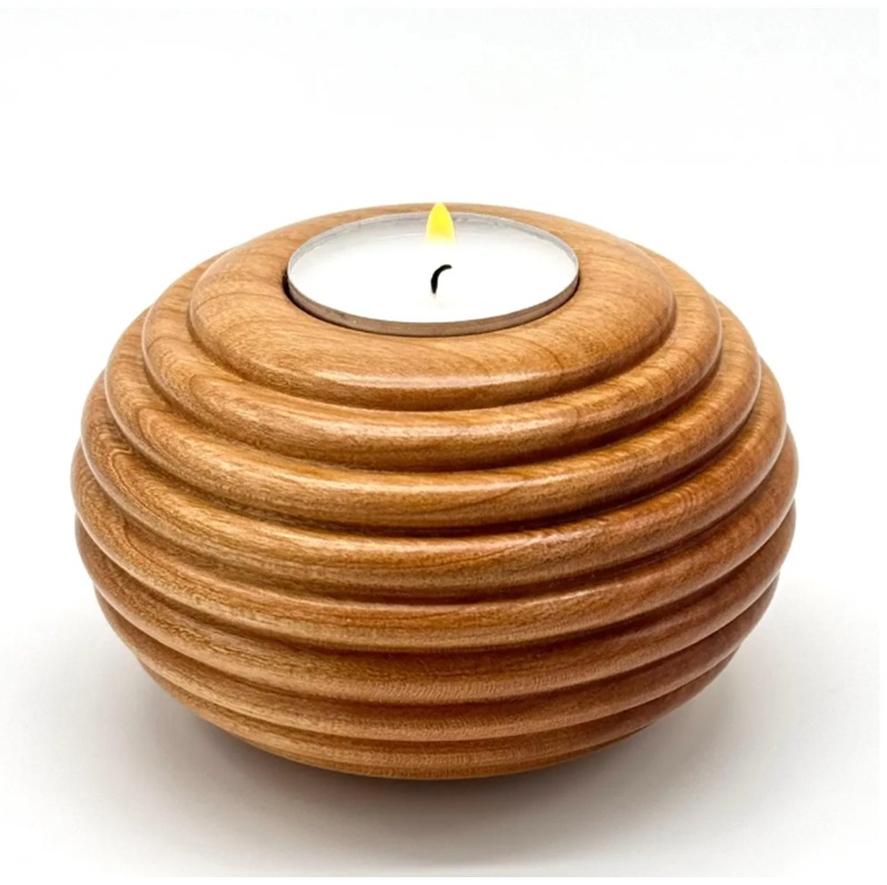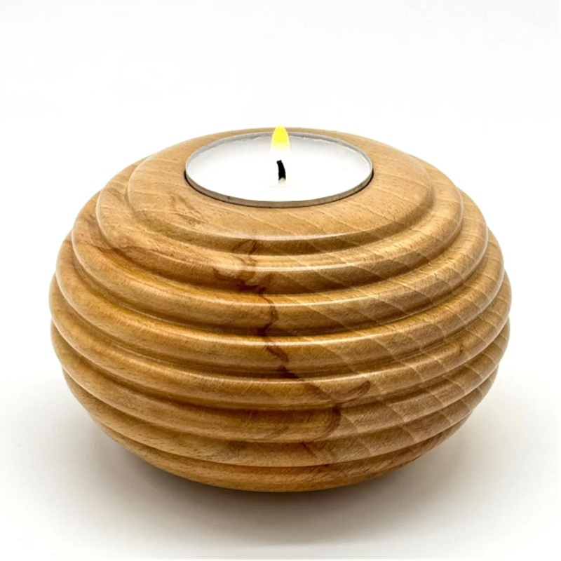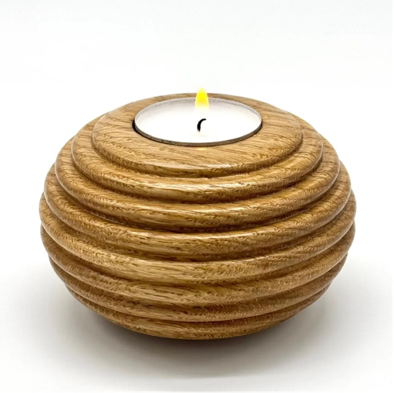 Spherical Layered Wooden Tealight Holders—handcrafted from premium solid wood, featuring a unique spherical design that makes warm, textured light. Perfect for adding rustic-modern charm to tables, shelves, or mantels.